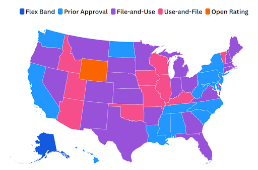 Some states require insurance commissioners to approve rates before they go into effect, while others require the insurance commissioner to intervene to object to proposed rate increases. There are some subtle distinctions but all fall into one of five categories (see map):[22]